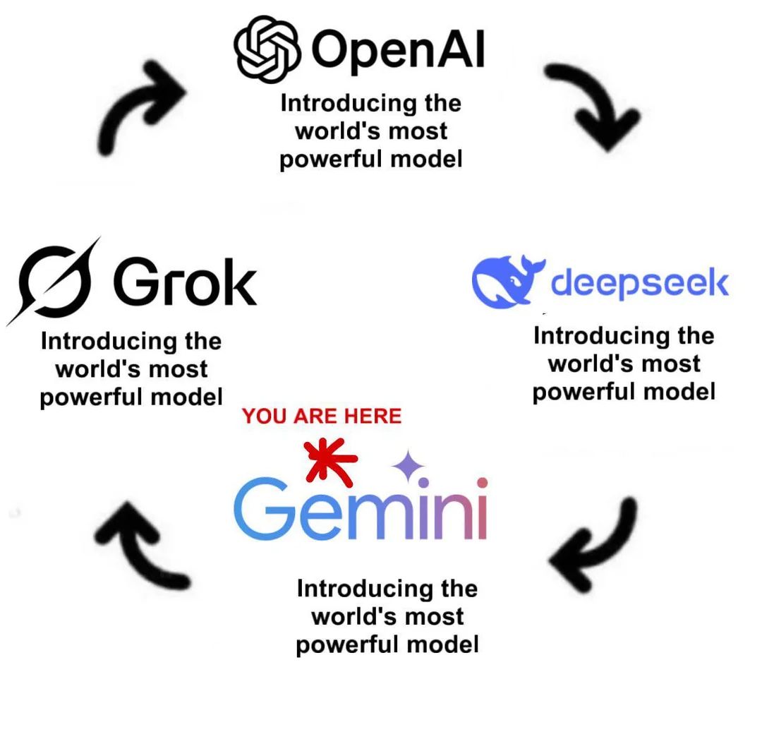 Esse ciclo vai continuar infinitamente. OpenAI lança algo. Depois Grok. Depois Google. Depois Anthropic. E assim segue.