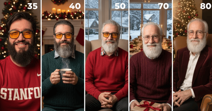 Joguei minha foto. Pedi pra me envelhecer a cada 10 anos. Consistência impressionante.